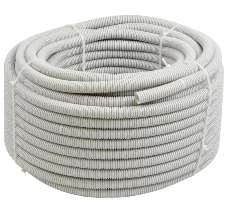 11. Rura karbowana elektroinstalacyjna RKGL 25/18,2mm giętka samogasnąca peszel z pilotem 320N PVC UV szara 50m Tubifor 95.36