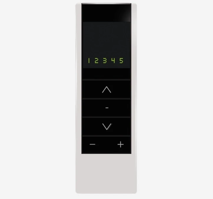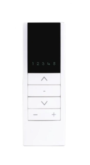 Pięciokanałowy pilot wyposażony w diody LED pokazujące numer kanału, przeznaczony do systemu InelControl