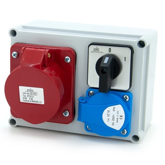 Rozdzielnica budowlana 16A/5P + GS 230V + wyłącznik 0-1, obudowa naścienna, ELS Elektrotechnika, N110-01
