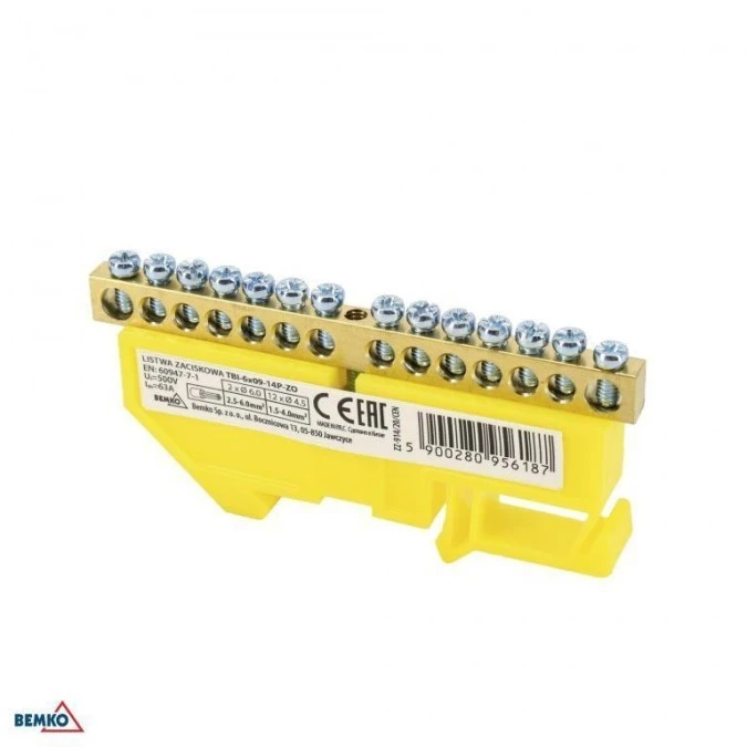 Listwa zaciskowa na szynę 6x9 14-torowa żółta