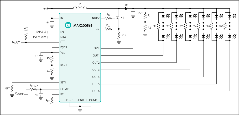 8. Integrated, 6-Channel High-Brightness LED Driver with Very Wide PWM Dimming Ratio and Phase Shifting for Automotive Displays Sample