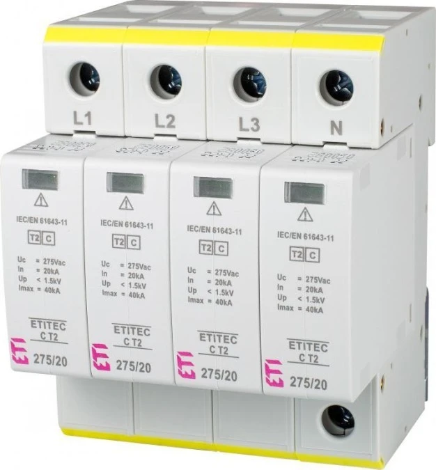 8. Ogranicznik przepięć typ T2 (C) ETITEC C T2 275/20 4+0 RC do instalacji mieszkaniowych TN-S 002440396 561.06