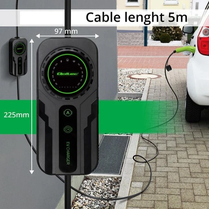 Qoltec Mobilna ładowarka do samochodu elektrycznego EV z regulacją 2w1 Typ2 SCHUKO 3.5kW 230V LCD Przenośna Wallbox 5m