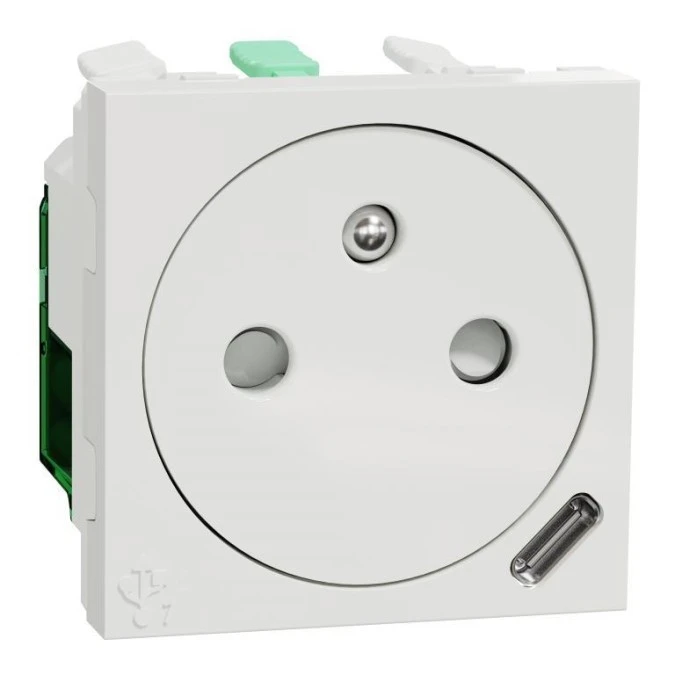 Gniazdo 2P+PE z USB C 10,5W, Unica, białe