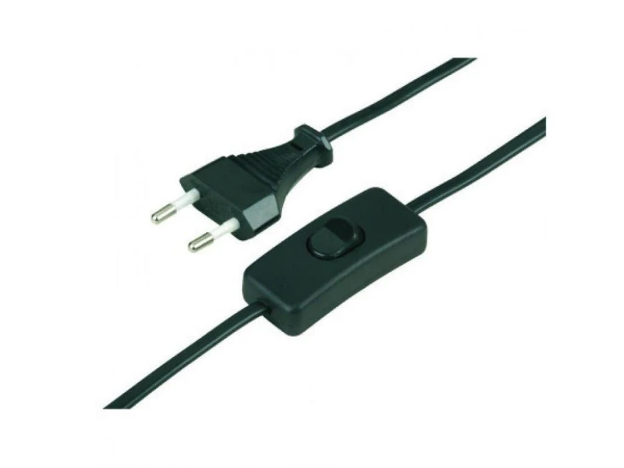 Przewód sznur przyłączeniowy z euro-wtyczką płaską 1,9 m, czarny, z z wyłącznikiemiem 05681