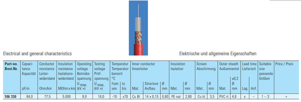 Przewód wysokonapięciowy koncentryczny 106 330