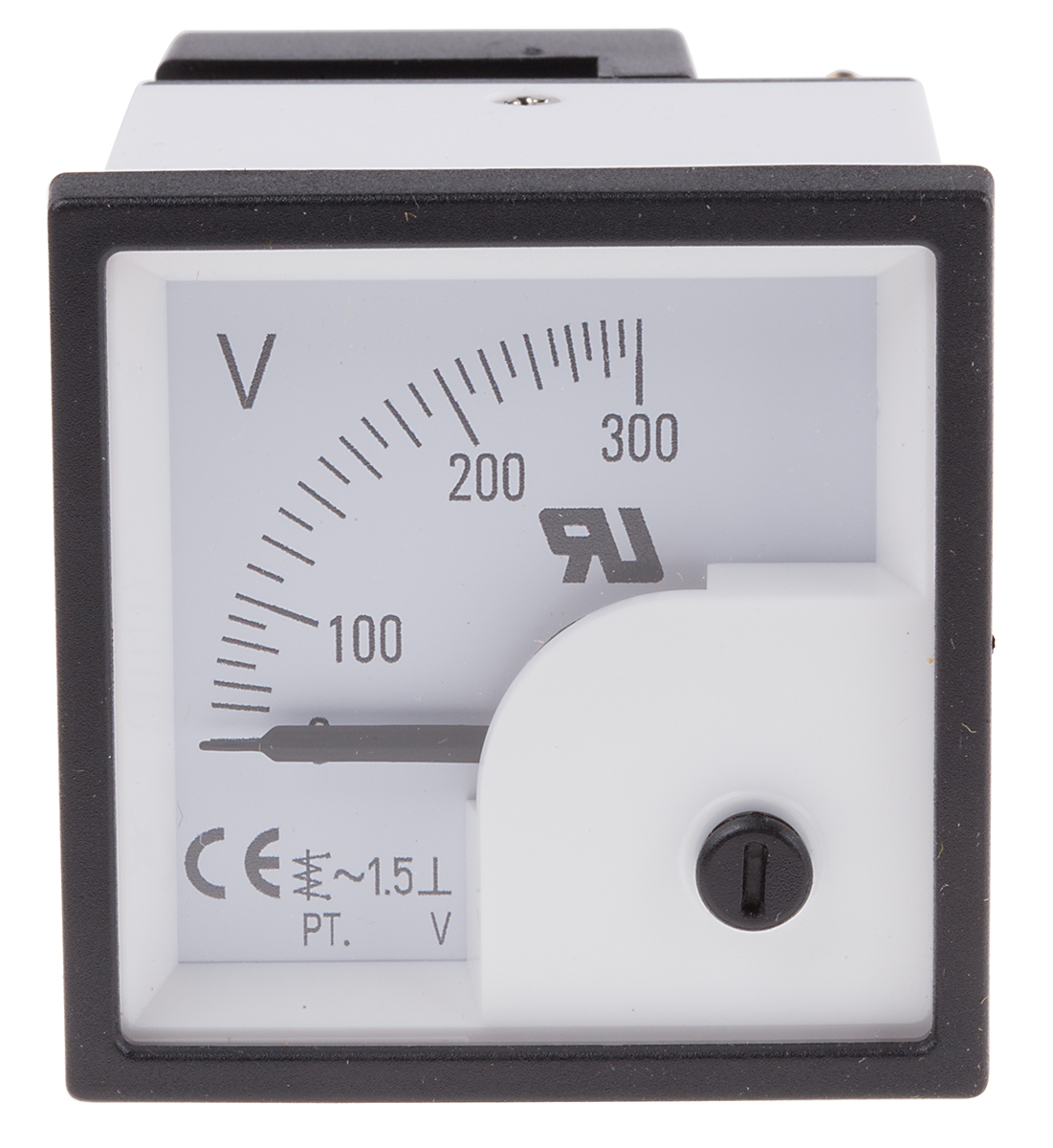 9. Woltomierz analogowy AC wycięcie: 46 x 46 mm RS PRO 1,5% 0 → 300V 124.00