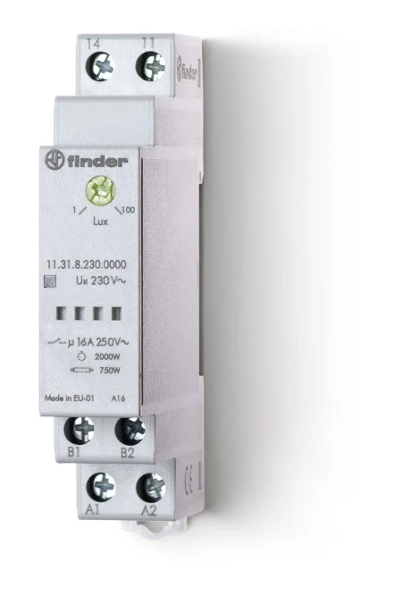 12. Wyłącznik zmierzchowy, 1Z 12A 24V AC/DC, 17,5mm, P20 +czujnik zewnętrzny IP54, 1-100 lx 11.31.0.024.0001 318.20