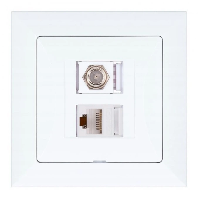 Gniazdo podtynkowe typu F + gn. RJ-45 Pola białe, 33026