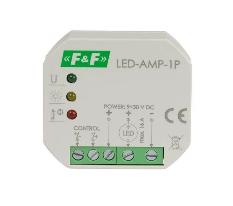Wzmacniacz sygnału zasilającego do oświetlenia LED 12/24 V DC do puszki podtynkowej LED-AMP-1P