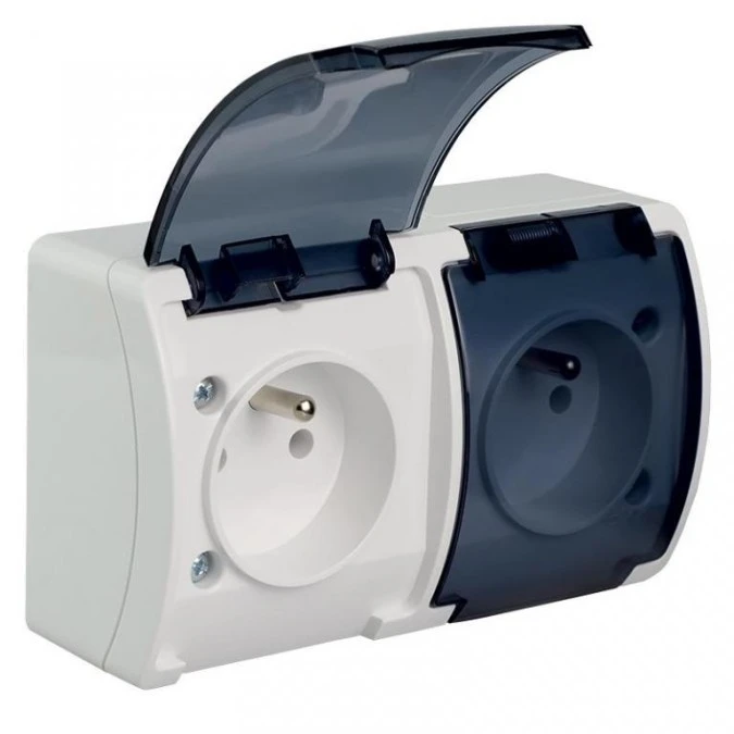 Gniazdo Hermetyczne Podwójne 2X 2P+Z Natynkowe Ip44 Białe / Przezroczyste...