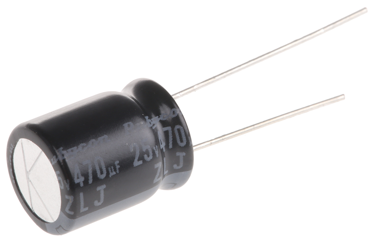 Kondensator 470μF 25V dc Radialny, Otwór przelotowy Rubycon roztaw: 5mm 10 (Dia.) x 12.5mm