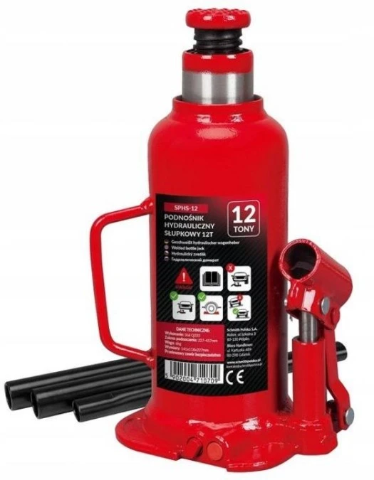 Podnośnik samochodowy hydrauliczny butelkowy słupkowy lewarek do 12 ton Schmith