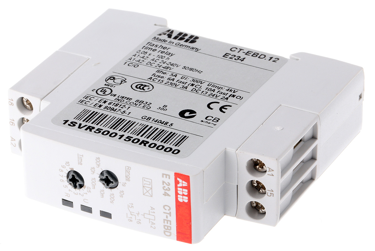 Timer Relay Szyna DIN 24 → 240 V ac, 24 → 48V dc SPDT 1-stykowy ABB SPDT 0.05 s → 100h