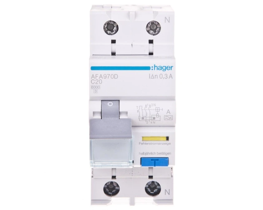 Wyłącznik różnicowo-nadprądowy RCBO 1P+N C20A 6KA 0,3A Typ A AFA970D