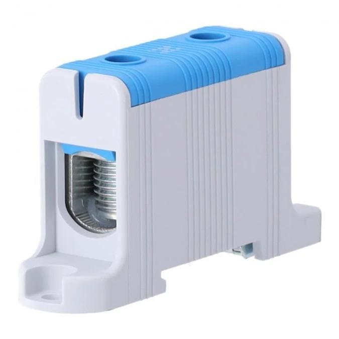 Blok rozdzielczy odgałęźny Al/Cu 16-95mm2 (max. 95mm2) na szynę TH35 niebieski FJ-E95/B HEDO