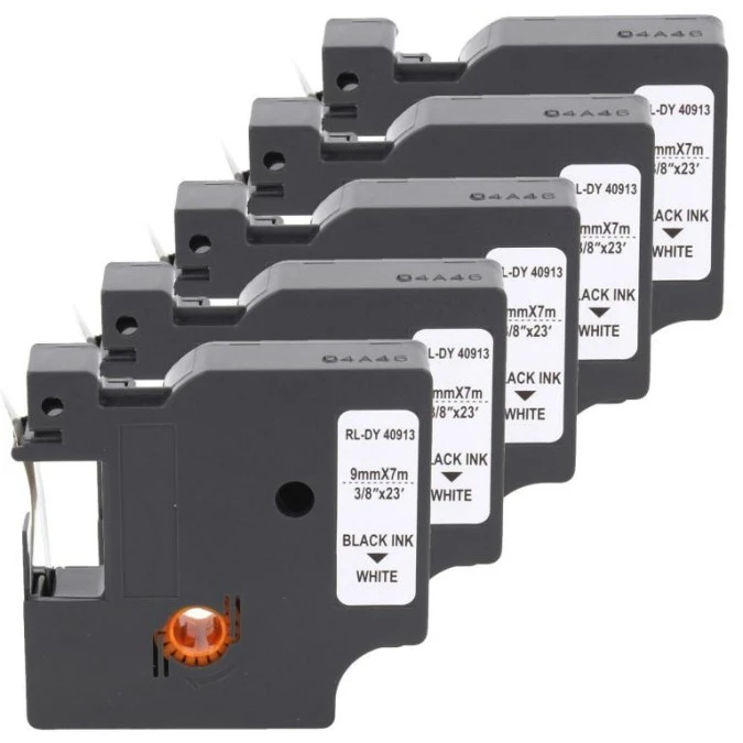 5. Taśma 5x D1 40913 do drukarki DYMO 9mm 7m biała taśma czarny nadruk 105.04
