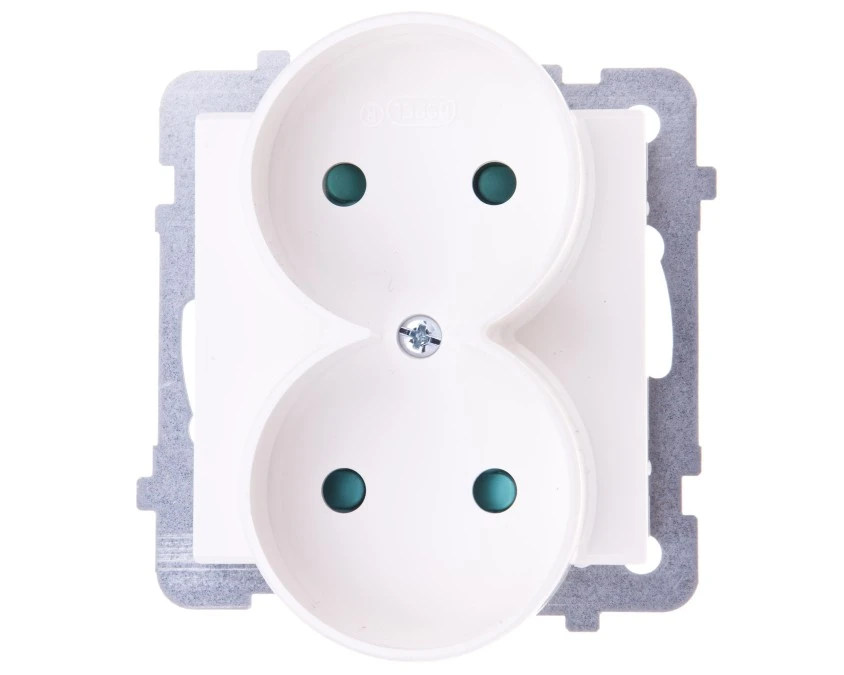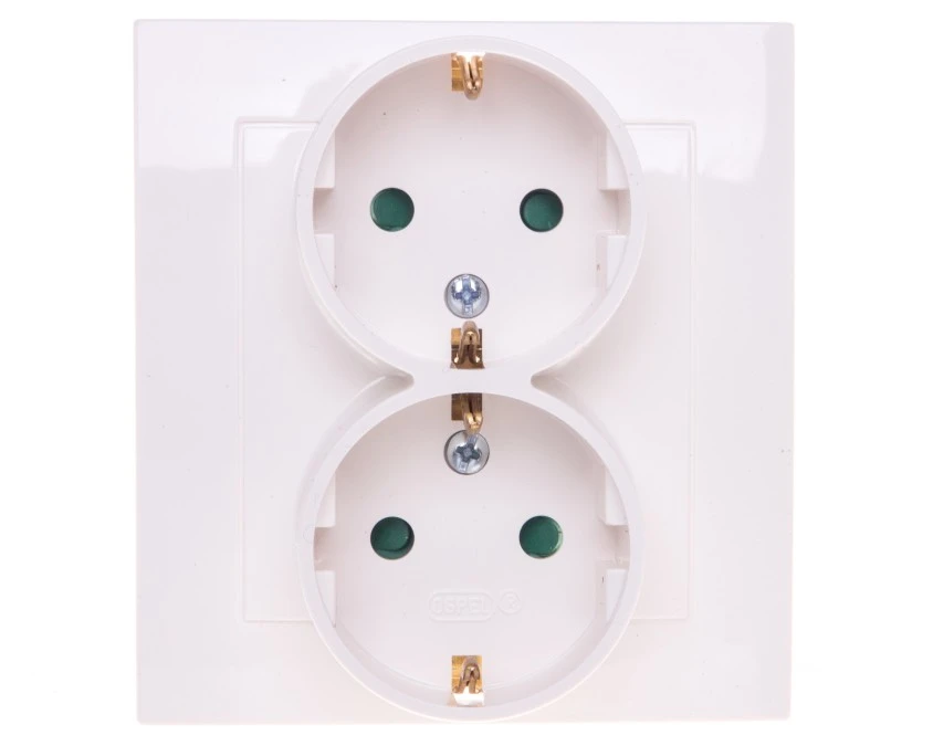 13. KARO Gniazdo podwójne z uziemieniem do ramki IP-20 zaciski gwintowe ecru perłowy GP-2SRZ/m/42 OSPEL 22.21
