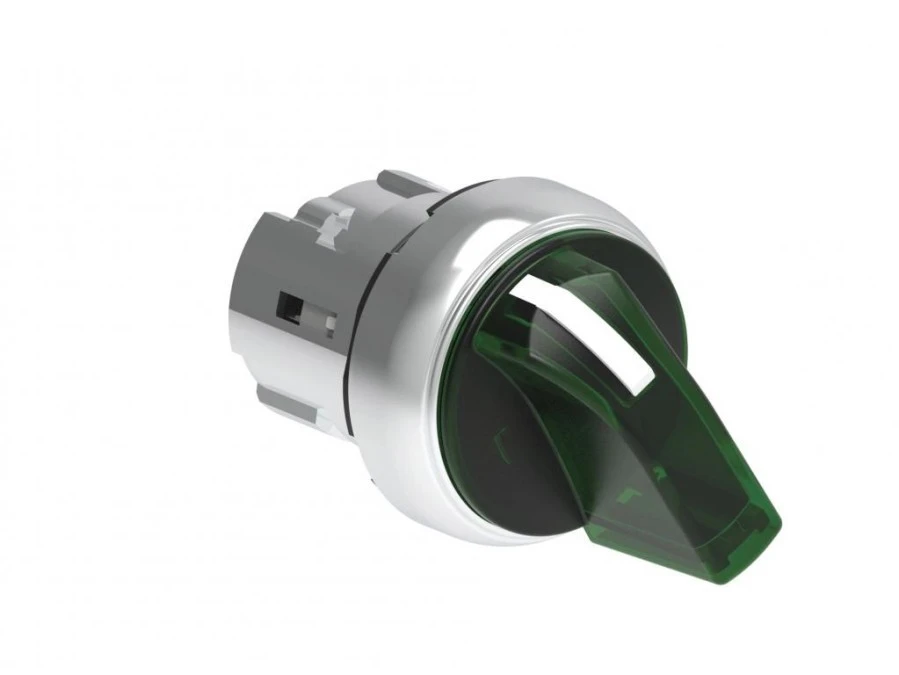 Przełącznik 3 pozycyjny 1-0-2 metalowy podświetlany z samopowrotem fi22mm pokrętło krótkie Zielony LPSSL1313