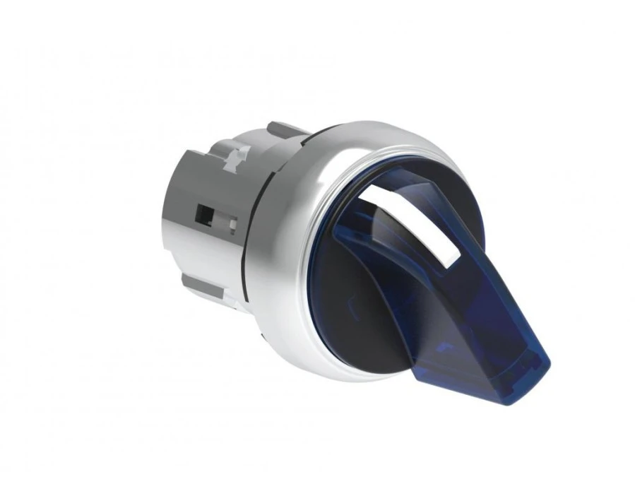 Przełącznik 3 pozycyjny 1-0-2 metalowy podświetlany z samopowrotem fi22mm pokrętło krótkie Niebieski LPSSL1316