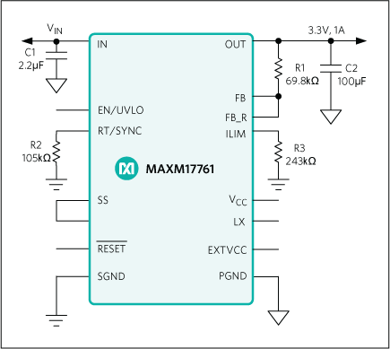 11. 4.5V to 76V, 1A High-Efficiency, DC-DC Step-Down Power Module with Integrated Inductor Sample