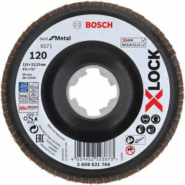 1. Bosch 2608621768 X-LOCK Flap Disc 125mm Zirconium Oxide Metal Work 37.13