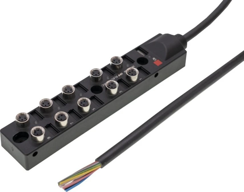 VK001109 Rozdzielacz, 23x164x31mm, 10-30V DC, 10x M8 3-pin, stały rozdzielacz kabla / podłączony kabel magistrali, IP67