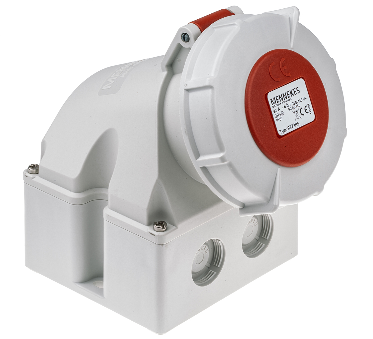 11. Złącze przemysłowe - zasilające 32A Gniazdo 400 V 4P Żeński MENNEKES Czerwony Montaż ścienny IP67 572.21