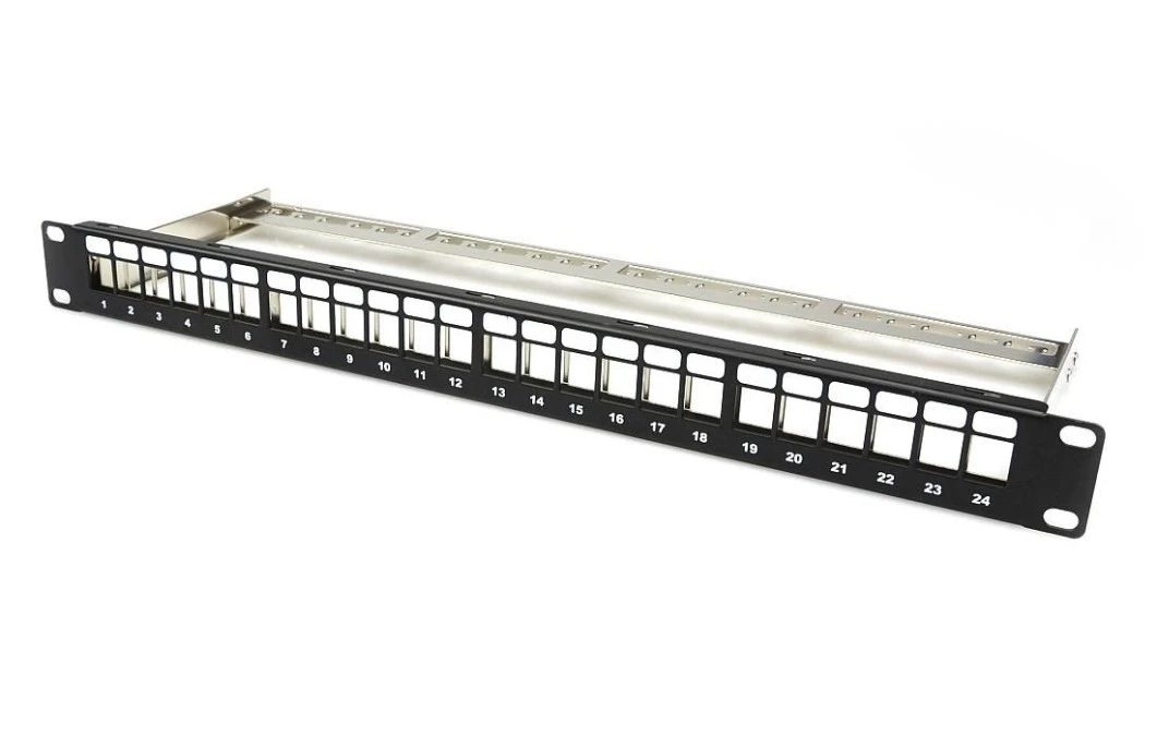 Patch panel 19cali 1U 24xRJ45 modularny keyston - czarny GMPnet supported by BITNER - 25 LAT gwarancji CU.PP.00021