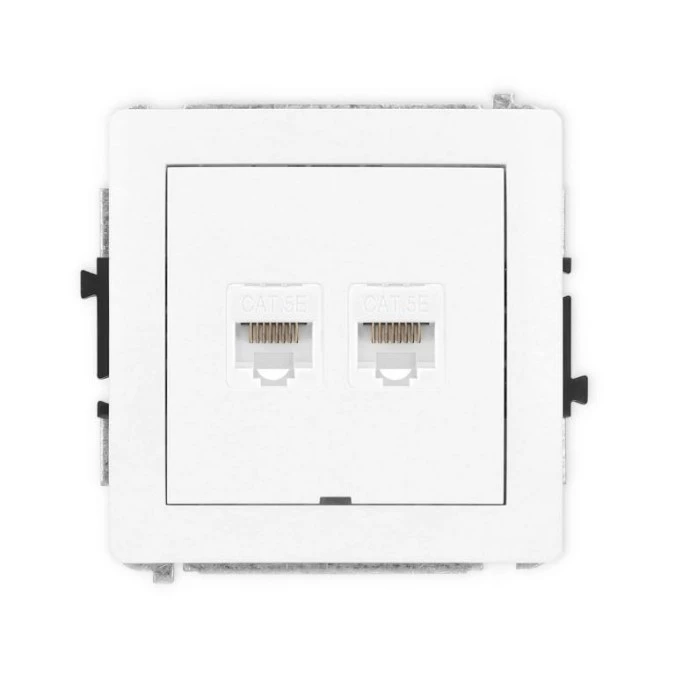 5. DECO Mechanizm gniazda komputerowego podwójnego 2xRJ45, kat. 5e, 8-stykowy, bez pola opisowego, biały mat 25DGKBO-2 107.11