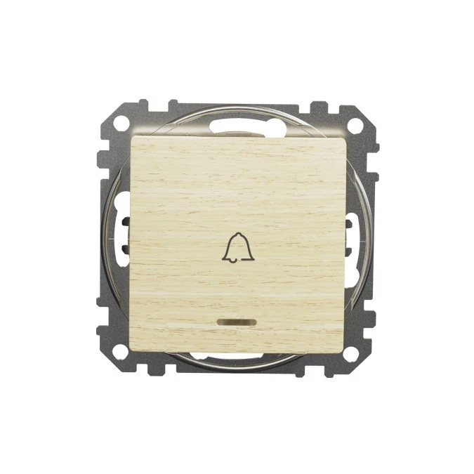 Przycisk 1-biegunowy dzwonek z podświetleniem, brzoza, efekt drewna, Sedna Design i Elements SDD180131L