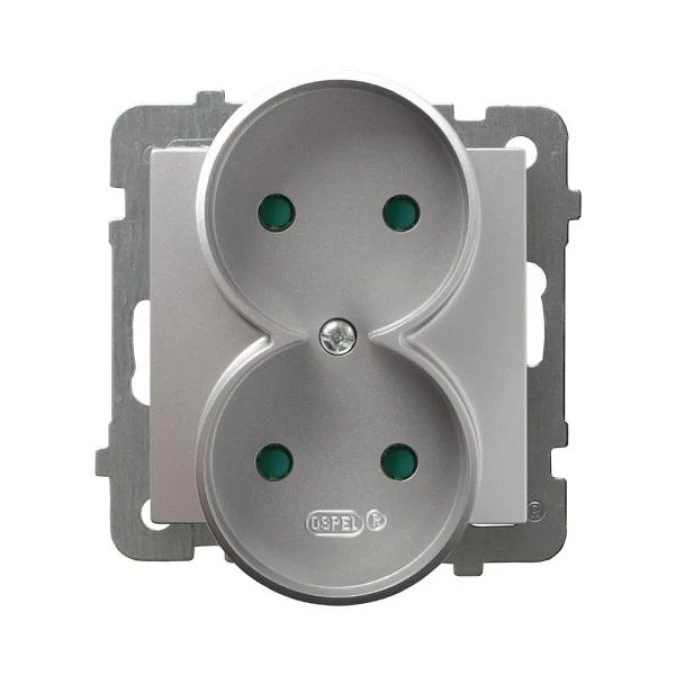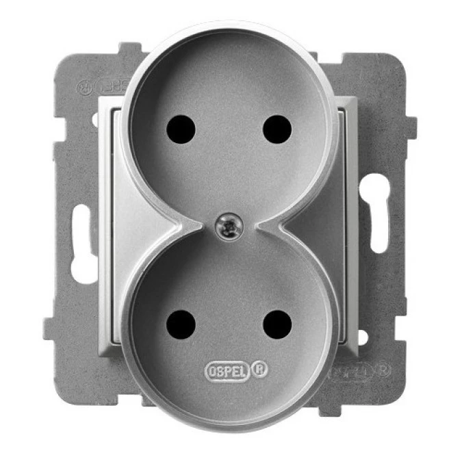As Gniazdo Podwójne Z/U Z Przesłonami Srebro Gp-2Grzp/M/18