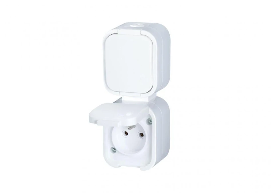 B2 Gniazdo podwójne 2P+Z bryzgoodporne z klapką w kolorze wyrobu IP54 biały 00060278
