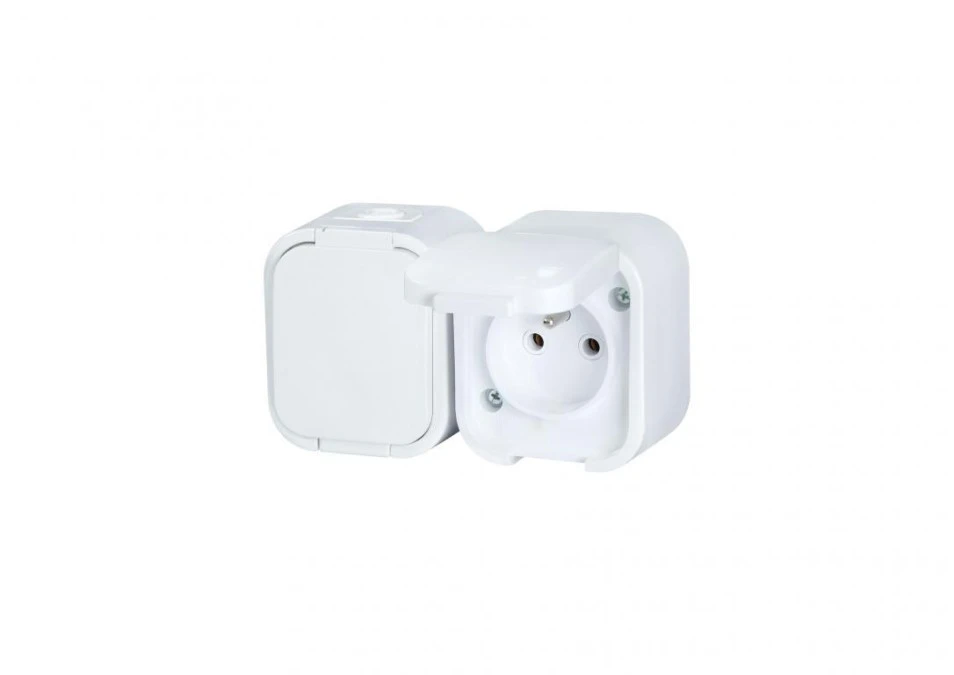 9. B2 Gniazdo podwójne 2P+Z bryzgoodporne z klapką w kolorze wyrobu IP54 biały 00060278 19.57