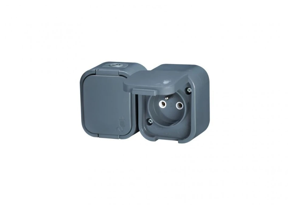 7. B2 Gniazdo podwójne 2P+Z bryzgoodporne z klapką w kolorze wyrobu IP54 szary 00060278 19.57