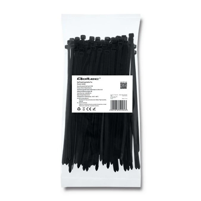 Qoltec Opaski zaciskowe Trytki kablowe 4.8*200mm 100 szt. Nylon66 UV Czarne