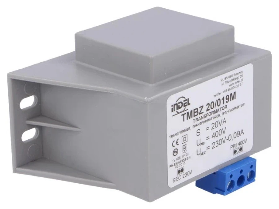 Transformator Zalewany 20Va, 400Vac, 230V 0,08A Śrubowy Tmbz 20/019M