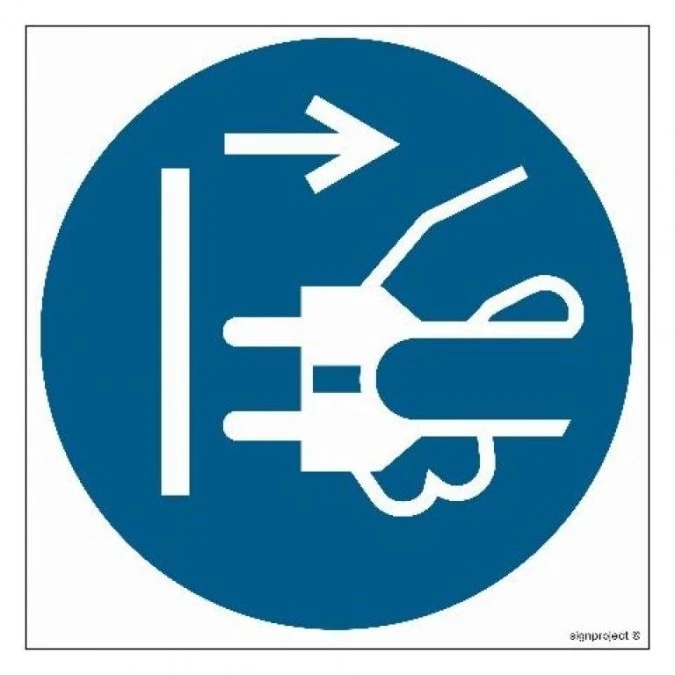 ZNAK - GJ006 Nakaz odłączenia urządzenia od sieci elektrycznej 10 x 10 cm FN - Folia samoprzylepna