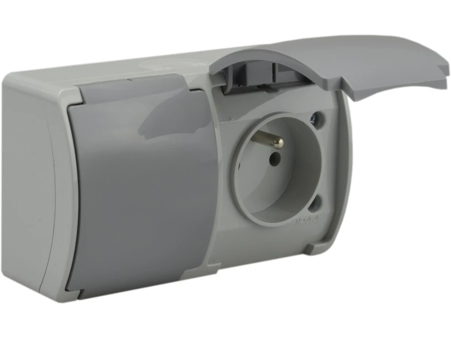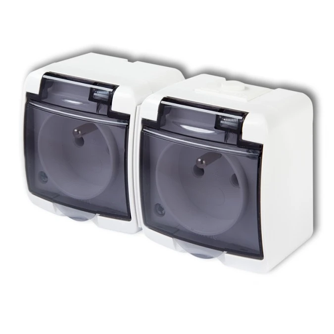 Gniazdo hermetyczne podwójne 2x 2P+Z natynkowe IP44 szare Koala 162-08 61.384