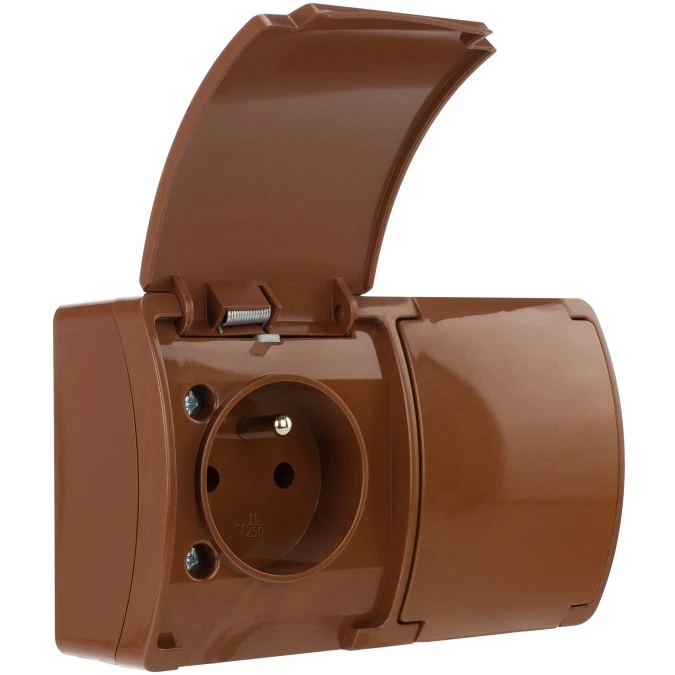 3. Gniazdo hermetyczne podwójne 2x 2P+Z natynkowe IP44 brązowe Koala 162-02 61.381 26.27