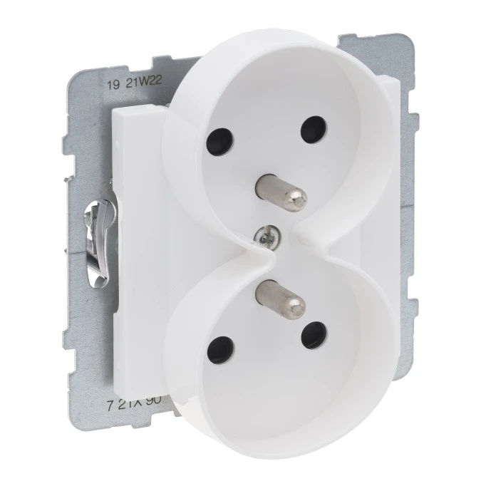 SUNO Gniazdo podwójne 2x2P+Z 16A 250V białe zaciski automatyczne z przesłoną 721190