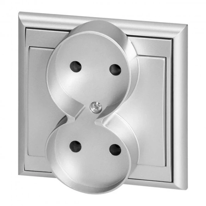 12. Gniazdo podwójne p/t 2x2P Luna, 16A, 250V, PT-5LR, srebrny,OR-OE-7606/2P/G 26.52