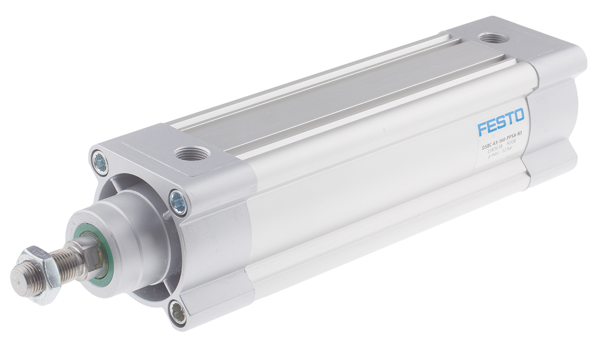 Siłownik pneumatyczny z tłoczyskiem skok: 160mm Festo Ø 63mm dwustronnego działania Action 353.1mm z amortyzacją