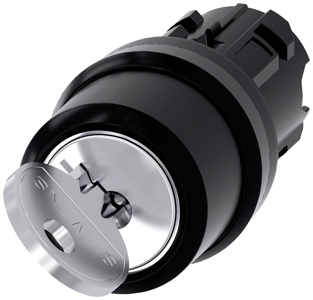 Siemens 3SU10504BF110AA0 3SU1050-4BF11-0AA0 Przełącznik kluczykowy pierścień przedni metalowy, błyszczący czarny 1 x 90