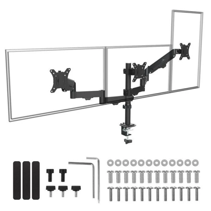 Uchwyt na 3 monitory Maclean, sprężyna gazowa, 17-27, 2-8kg, czarny, MC-137