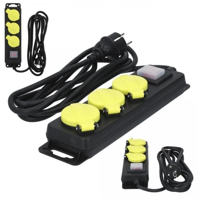 11. Przedłużacz elektryczny listwa zasilająca Kabel zasilający warsztatowy OW 3x1,5 (wtyk / 3 gniazda) 16A czarny 3m 76.03