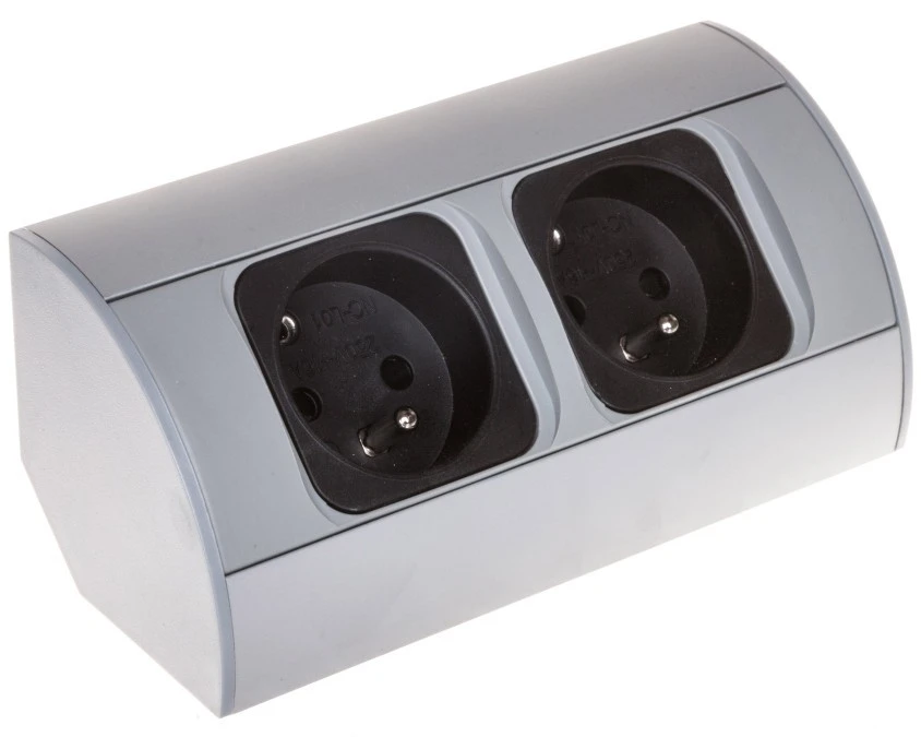 Gniazdo meblowe podwójne z/u 16A IP20 aluminium/ tworzywo, OR-AE-1303/G