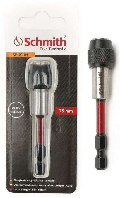 Uchwyt do bitów udarowy z samozaciskiem szybkomocujący 1/4 75mm - Schmith