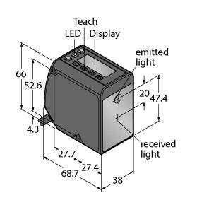 15. Czujnik laserowy odbiciowy 65x50x20mm Sn: 200-1500mm 12-28V DC PNP NC/NO wtyk M12 5pin IP67 PT66A610 7121.02