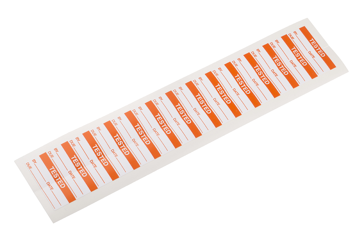 5. Etykieta samoprzylepna z nadrukiem tekst Tested 140 szt. RS PRO Klej 70.23